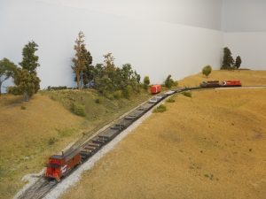 The E&N Railway in N scale is a 22’ by 13’ around-the-walls layout built on a two-foot deep shelf, with an additional upper shelf at one end. The modeled portion of the layout represents the E&N Victoria subdivision from Victoria (mile 0.8) to Chemainus (mile 51.2), serving freight customers at Victoria, Esquimalt, Langford, Duncan, and Chemainus; as well as the E&N Lake Cowichan subdivision from Hayward (mile 41.6, Victoria subdivision) to Lake Cowichan (mile 18.0, represented by the upper staging yard). Staging at the north end of the layout represents Wellcox, and at the south end represents the E&N’s Albion Yard and the CNR’s Point Ellice Yard in Victoria.