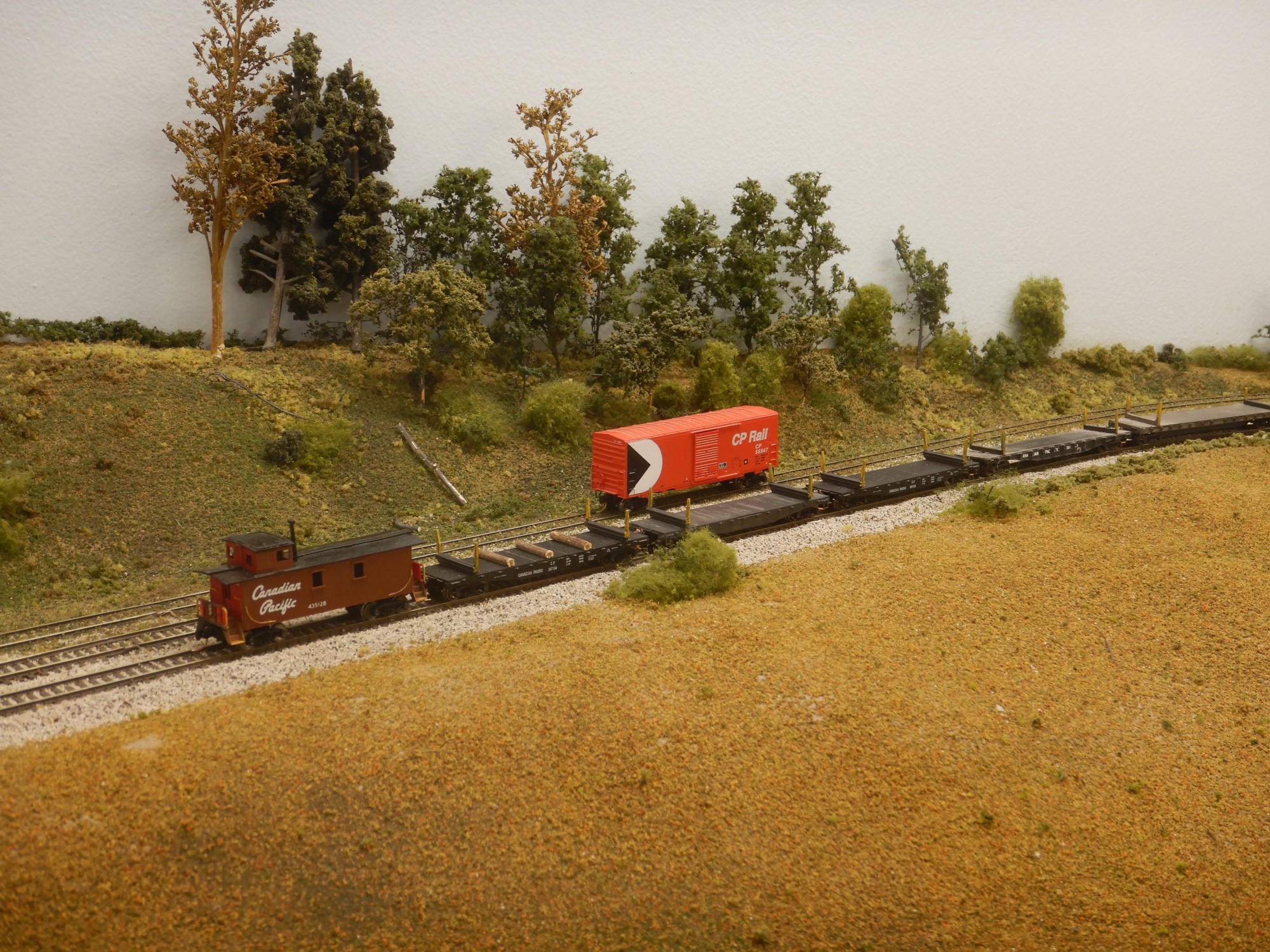 Many of the major structures are represented by simple card mock-ups or stand-in structures to give some context to operations. Basic scenery and some vegetation has been installed in the area around Hayward and a model of the large MacMillan Bloedel lumber shed at Chemainus is currently under construction.