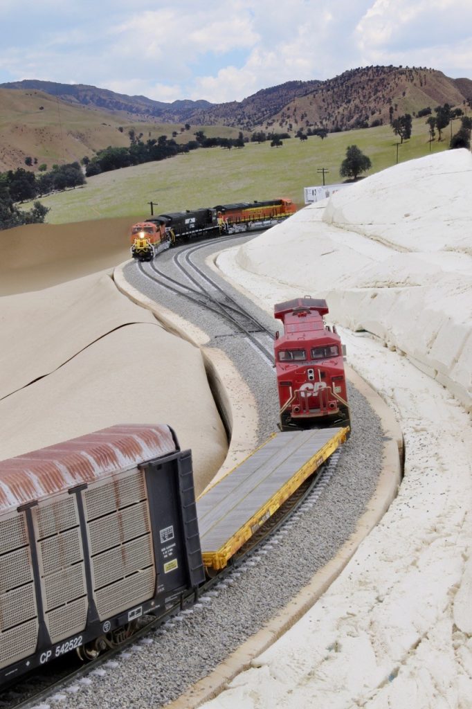 The Tehachapi features modern, mainline railroading of two major railroads with additional opportunities for way freight operations that complicate the mainline flow. Dispatching using the CTC CATS system on the Tehachapi is easy to learn and is like being in command of your own railroad. Block detection, centralized turnout control, and signalling provide real-time status and control of the whole railroad.
